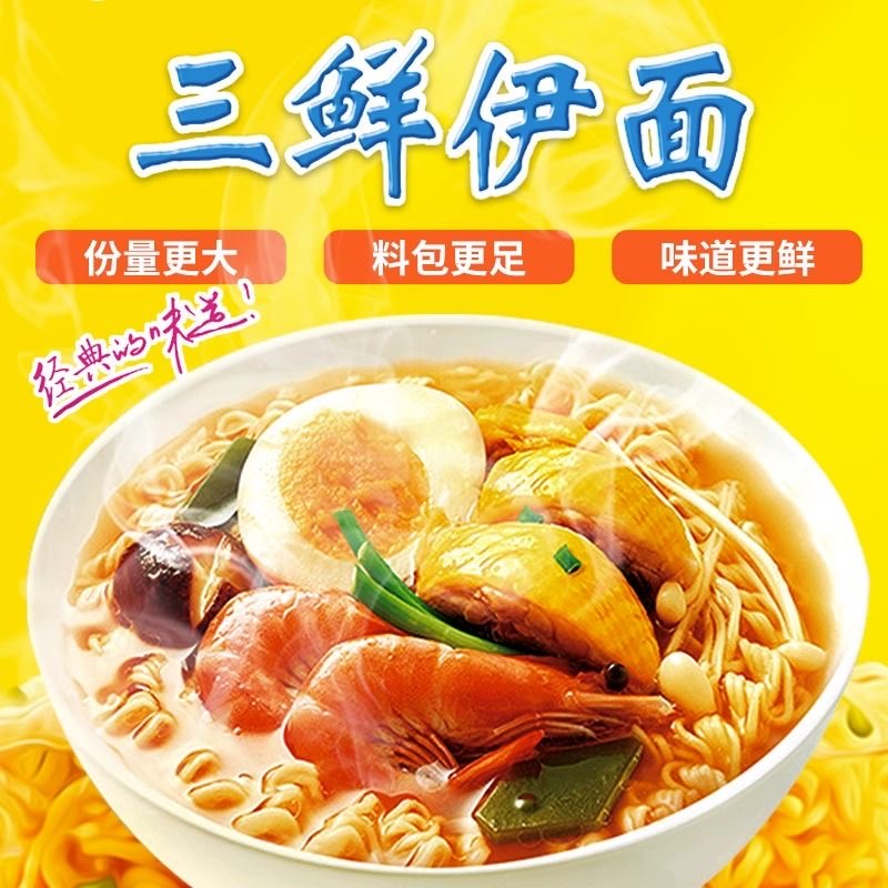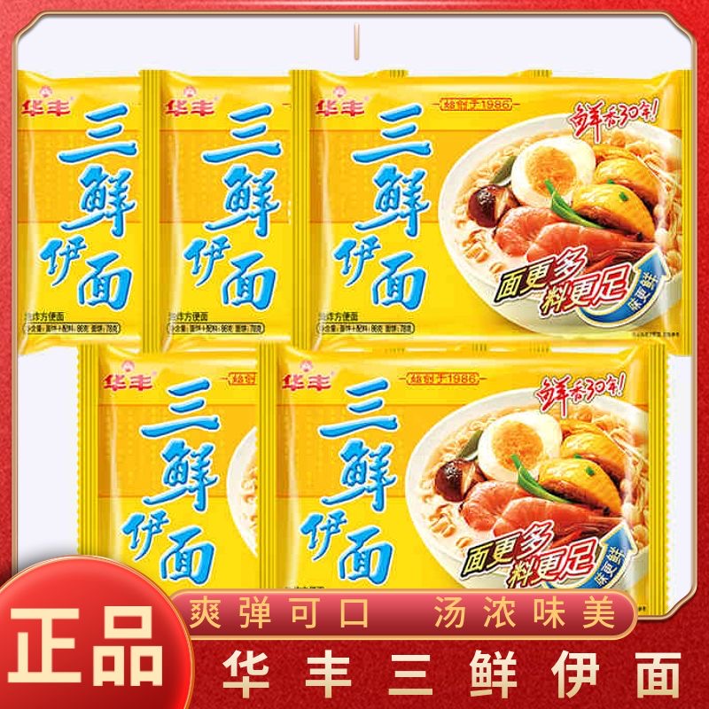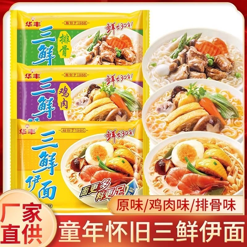 方便面 食品怀旧老式 华丰三鲜伊面鸡汁泡面袋装 干吃速食24包整箱装