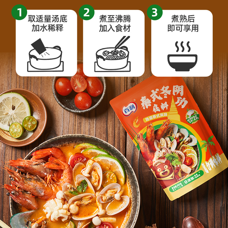 百利泰式 冬阴功汤0添加酸辣虾酱调料进口椰浆冬阴功海鲜火锅底料