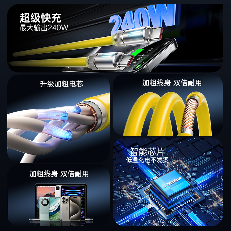 2025新款 c接口ipad平板笔记本手机数据线传输车载 240W超级快充发光呼吸灯适用华为vivo小米苹果安卓双头type