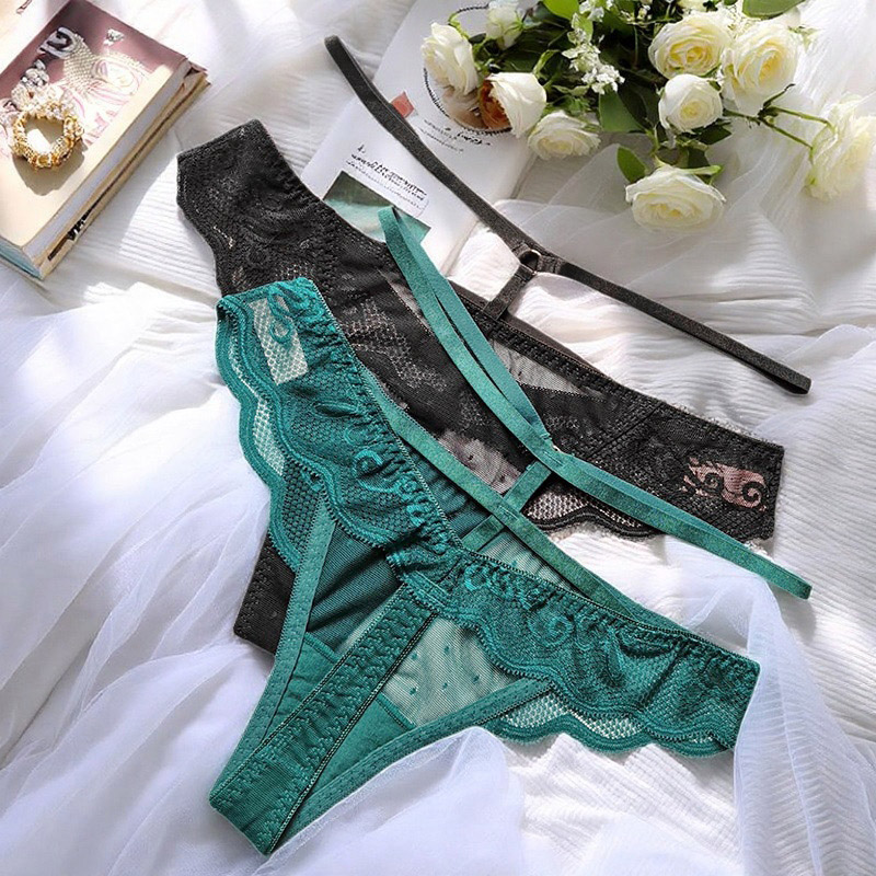 纯棉裆 弹力细带中腰无痕速干美臀镂空T内裤 轻薄性感蕾丝丁字裤 女