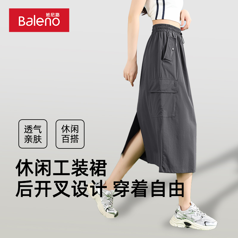佐丹奴长款 伞裙女纯棉磨毛通勤压褶A字裙半松紧腰半身裙05464701