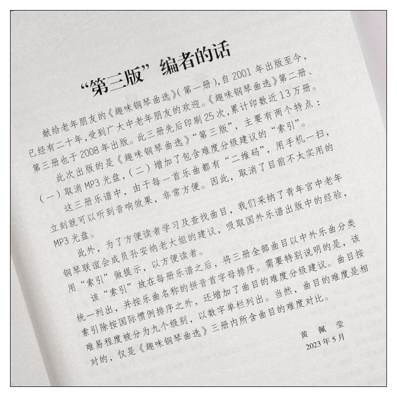 听音频 社 献给老年朋友 人民音乐出版 编著 黄佩莹 扫码 第三版 二 趣味钢琴曲选 正版