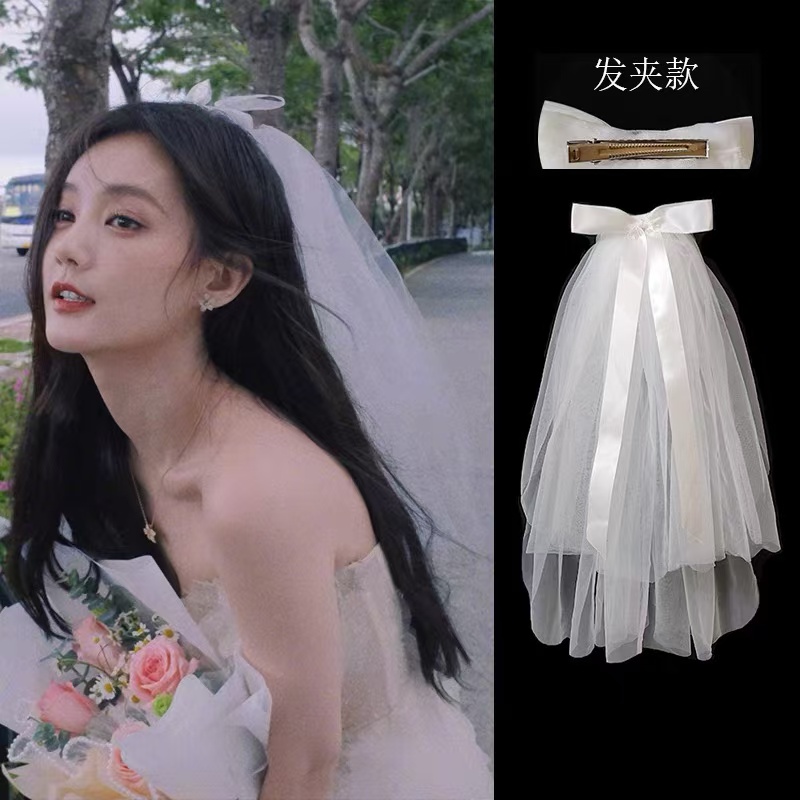 旦表演 饰蝴蝶结头纱儿童元 李一桐同款 求婚头纱领证登记拍照节日装