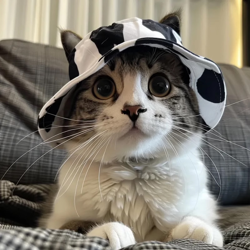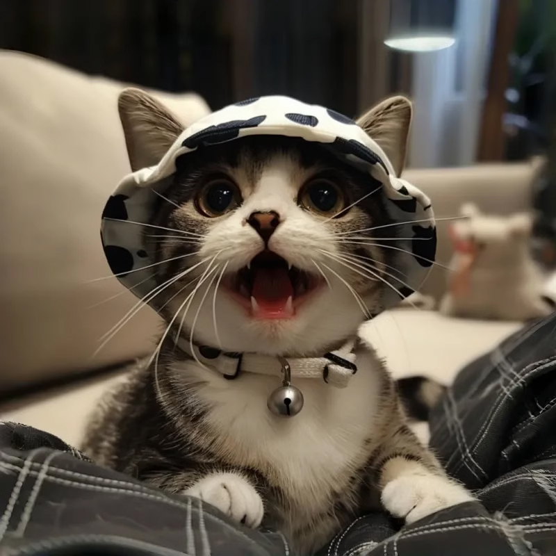 猫咪帽子夏季 遮阳帽漏耳朵可调节宠物头饰狗狗渔夫帽遛狗拍照神器