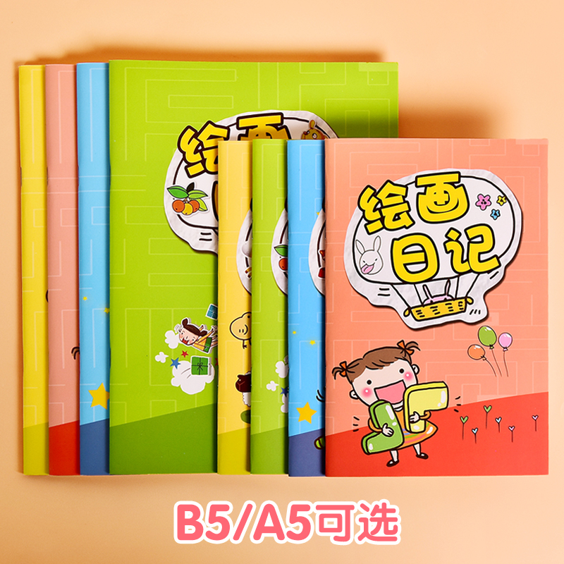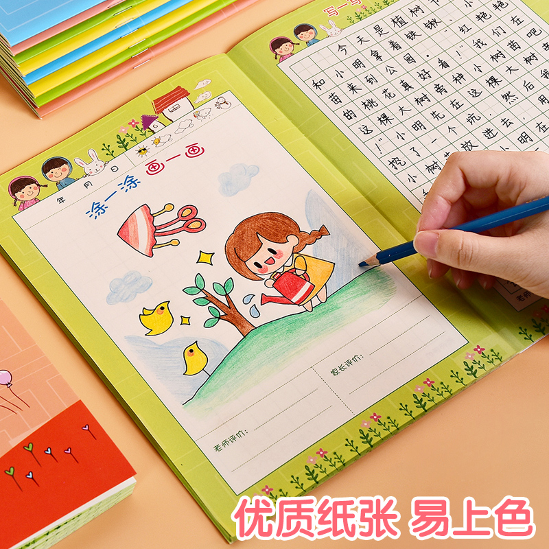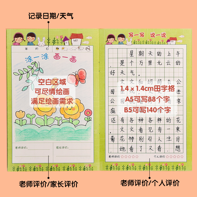小学生绘画日记本一年级二年级专用田字格带拼音线看图写话作业本子可爱幼儿园儿童左边画画右边写日记本a5b5