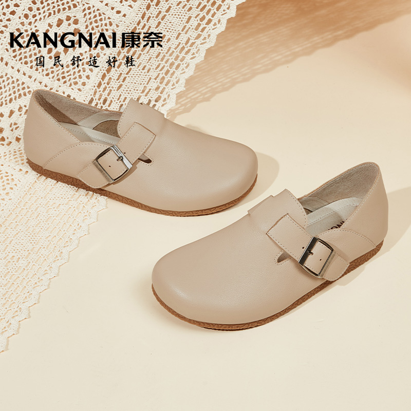 春季 通勤搭扣皮鞋 新款 女士套脚软底单鞋 真皮软底勃肯鞋 康奈女鞋