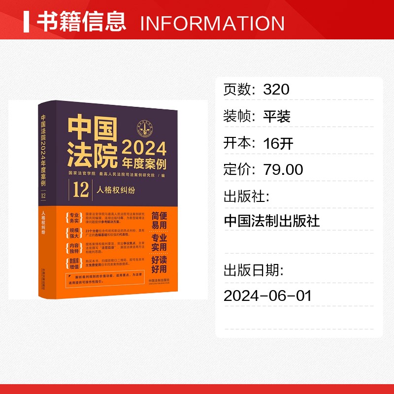 最高人民法院司法案例研究院 编 司法案例 中国法院2024年度案例 新华书店正版 国家法官学院 实务解析社科 图书籍 人格权纠纷