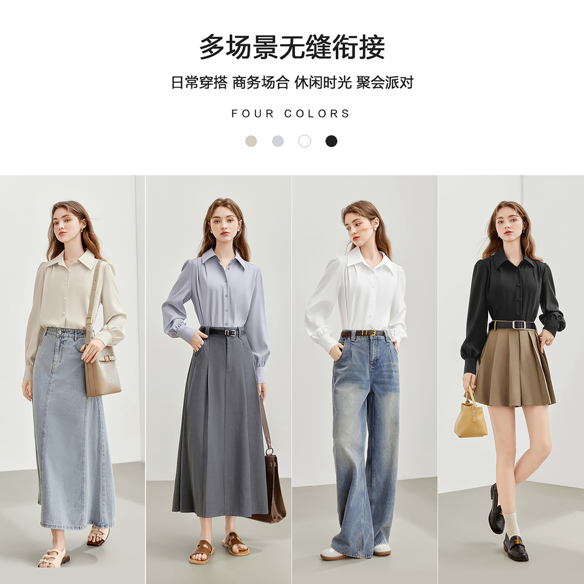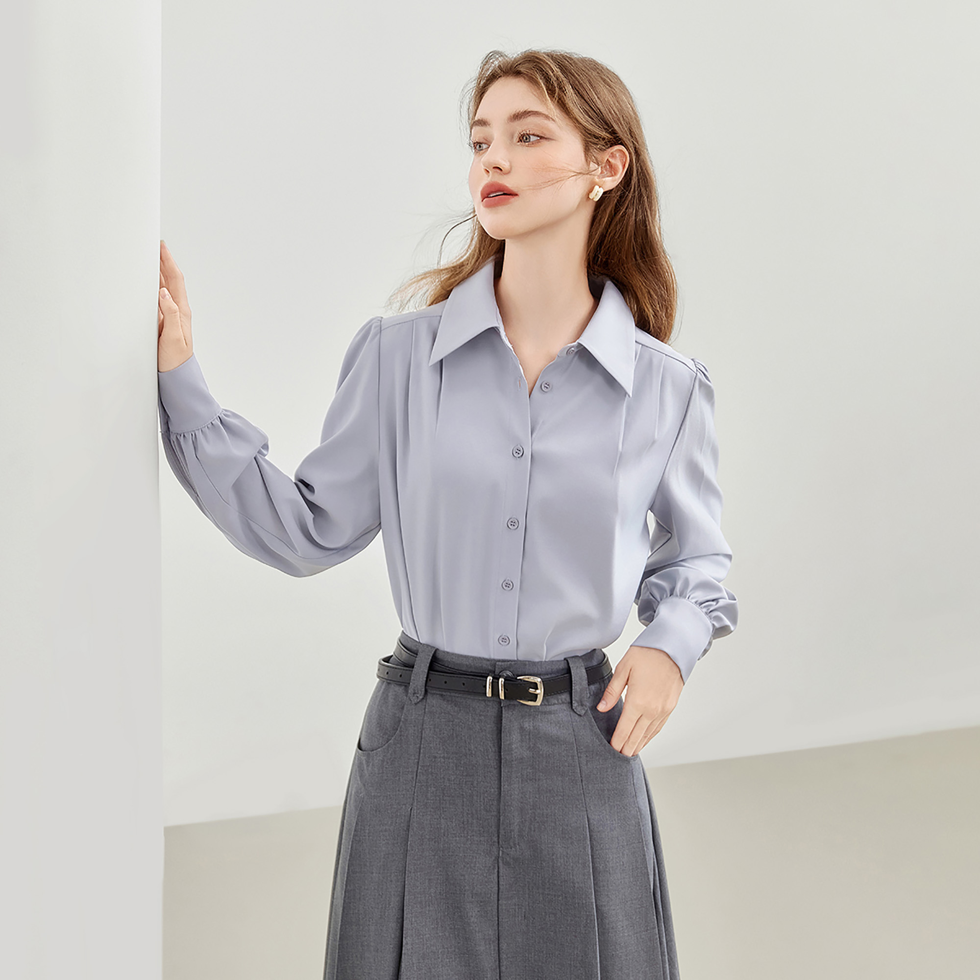 新款 MEETLADY法式 女2024秋季 衬衫 百搭衬衣女上衣 气质简约通勤长袖