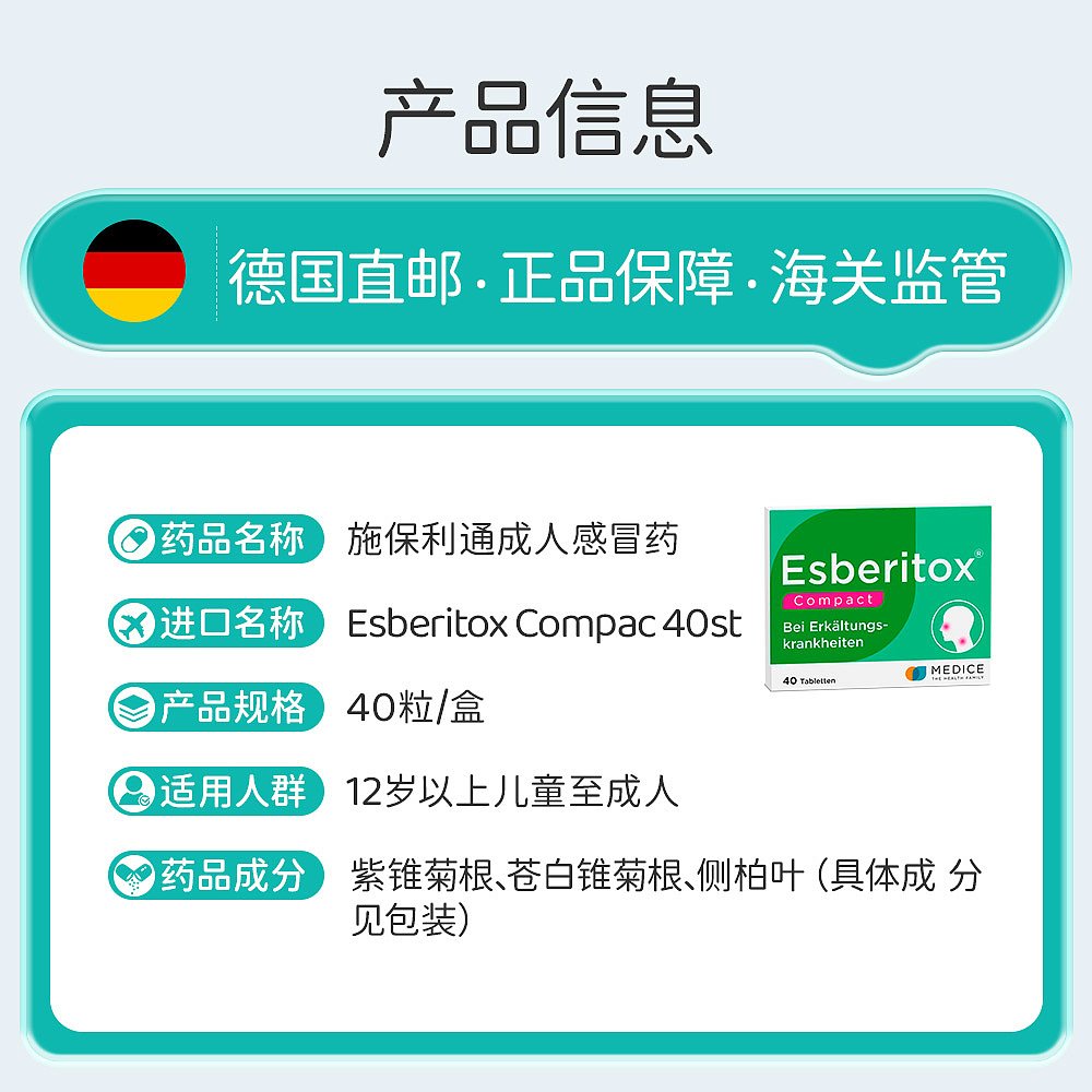 欧洲直邮德国药房Esberitox施保利通成人感冒药40粒抗病毒流感