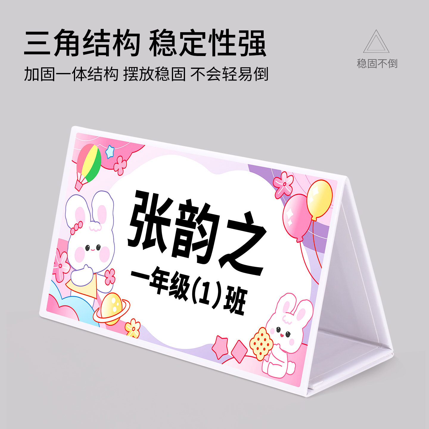 姓名牌小学生桌牌名字牌一年级新生名牌男生星球宇航桌面展示牌双面免费打印桌面台牌耐摔座位牌9x16cm入学牌