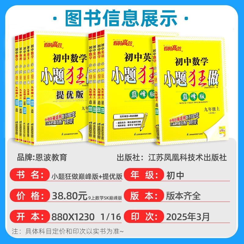 2025秋26春新版 九年级下册上册全一册巩固基础冲刺高分人教苏科译林沪教版 恩波教育小题狂做巅峰版 初中七年级八 提优版 江苏专用