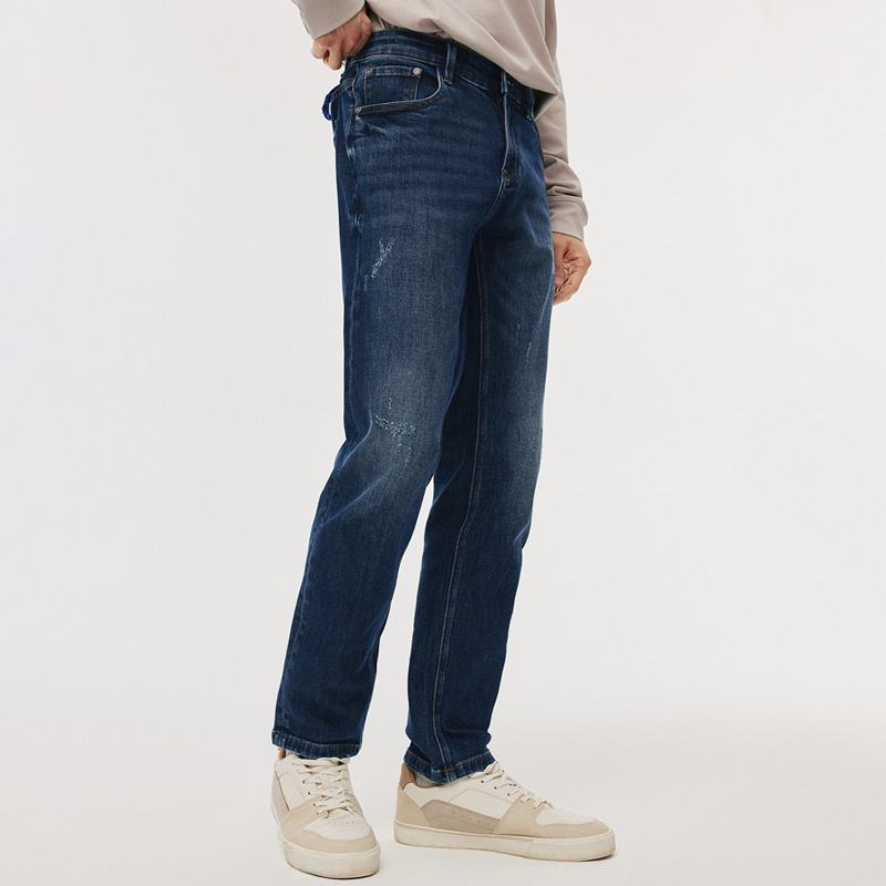 子 百搭直筒裤 Navigare意大利小帆船蓝色磨破复古牛仔裤 男秋冬新款