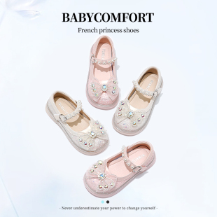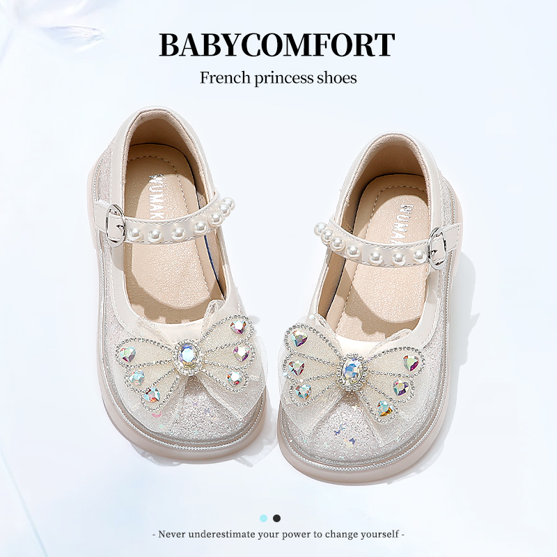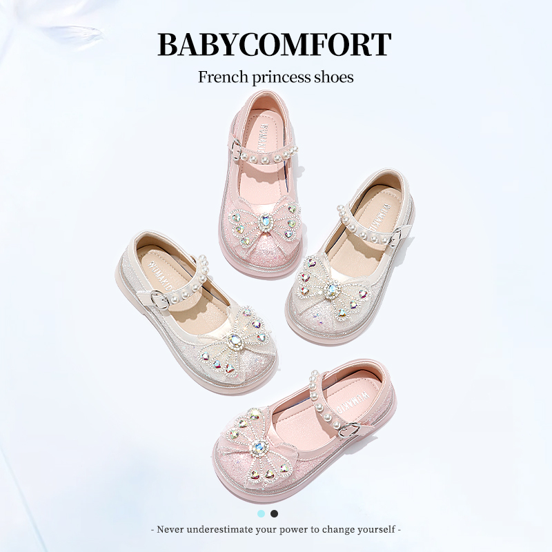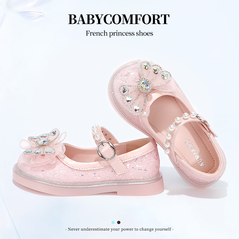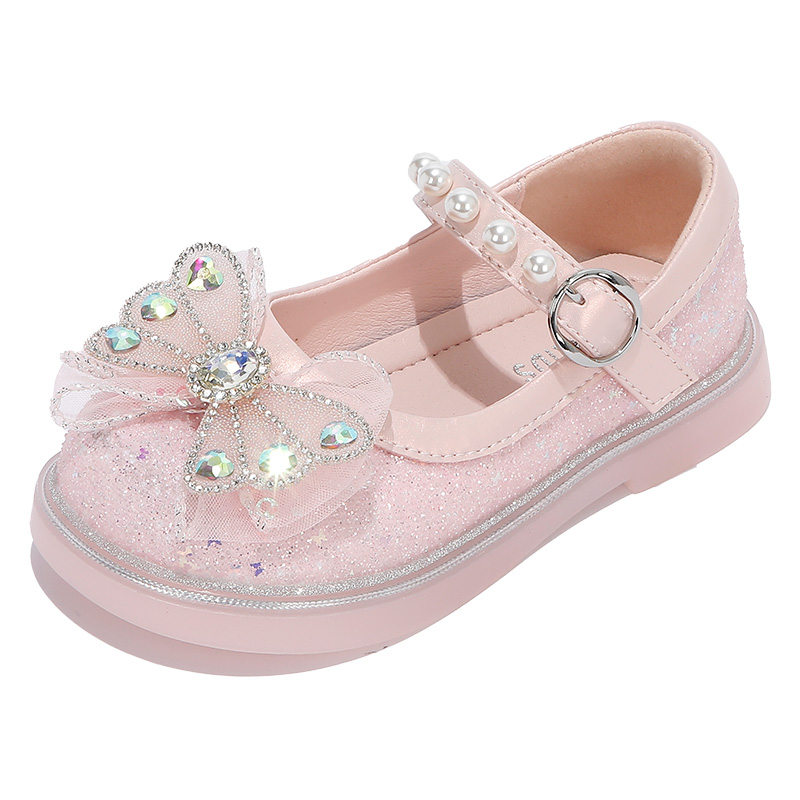 小女孩蝴蝶结宝宝软底水晶鞋 女童鞋 春秋季 2025新款 子儿童公主皮鞋
