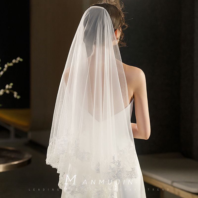 新娘结婚头纱拍照婚礼造型主婚纱头饰仪式 遮面纱带梳子双层头纱白