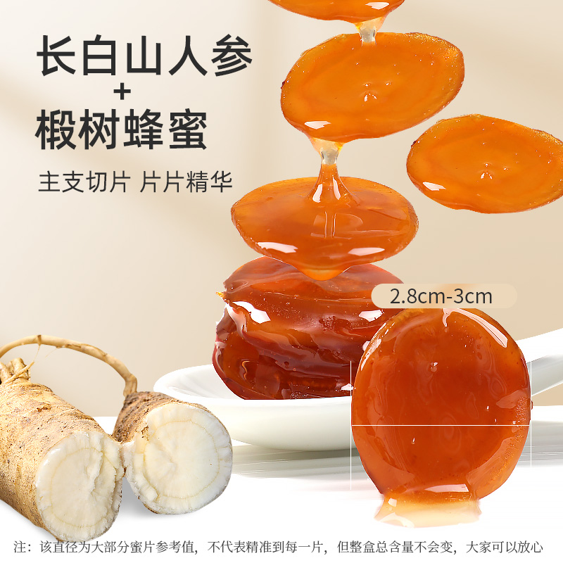 老谷头鲜参蜜片长白山人参蜜片鲜参红参切片泡蜂蜜即食蜜饯滋补品
