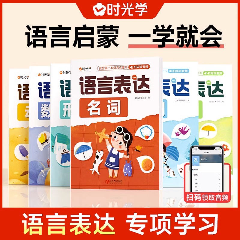 儿童语言表达训练启蒙课带音频宝宝学说话有声书动词名词形容词反义词修词数量词陪伴锻炼孩子表达能力专项训练书籍全套6册