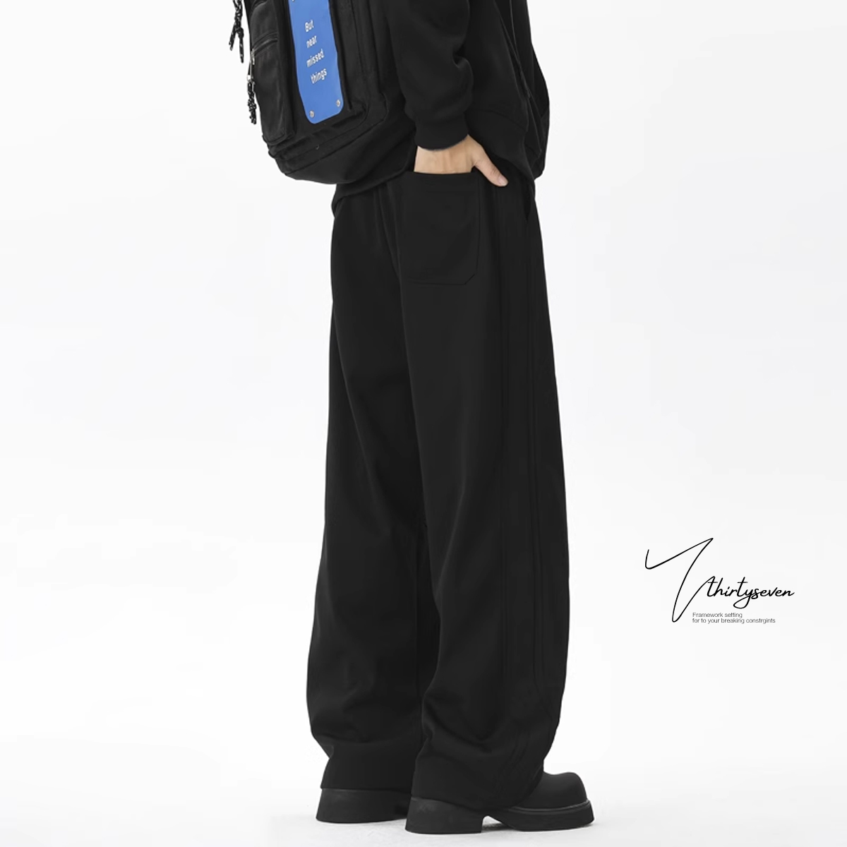 潮牌拼接青少年阔腿运动卫裤 V37日系cleanfit灰色休闲裤 子男秋季