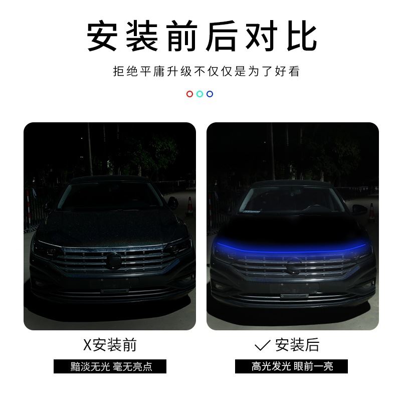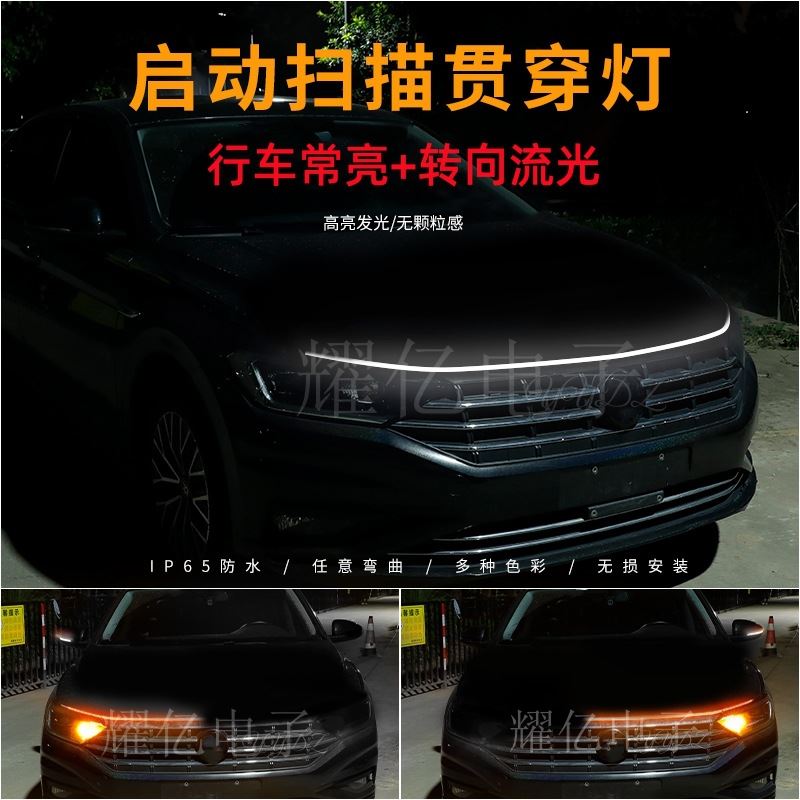 汽车LED日行灯启动扫描幻彩双色转向流光机盖贯穿中网装 饰导光条