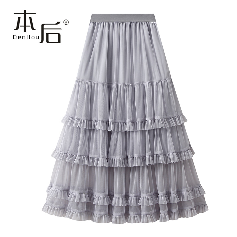 法式 薄款 8929 小众甜美蛋糕裙半身裙秋女长裙纱裙a字裙 清仓