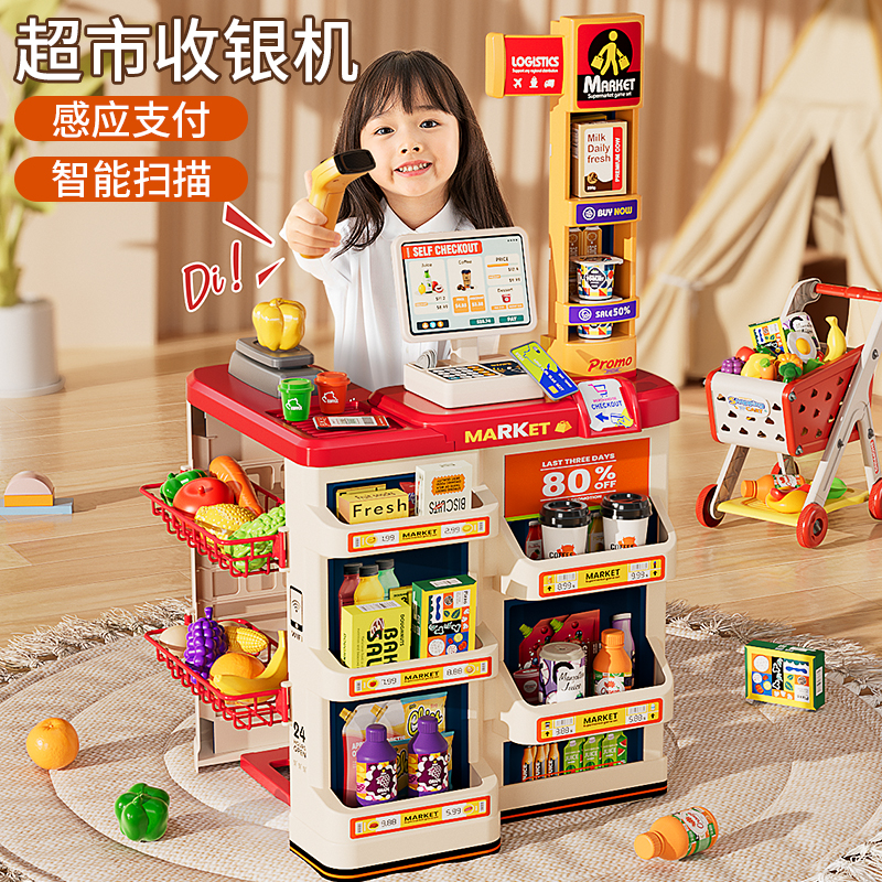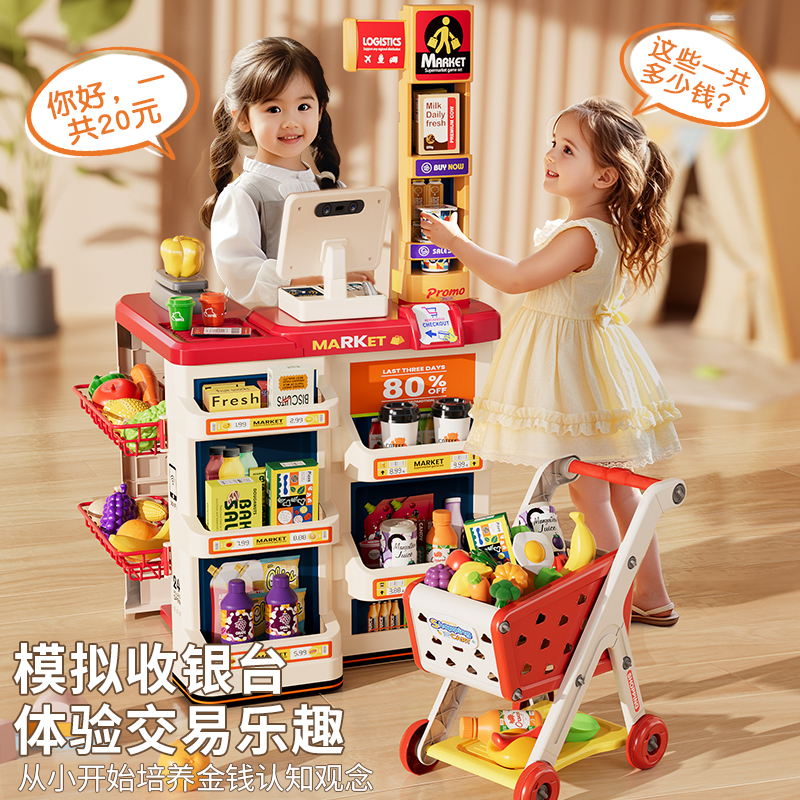 益米儿童过家家仿真超市收银机台购物车玩具女孩女童生日礼物6岁