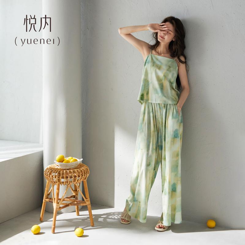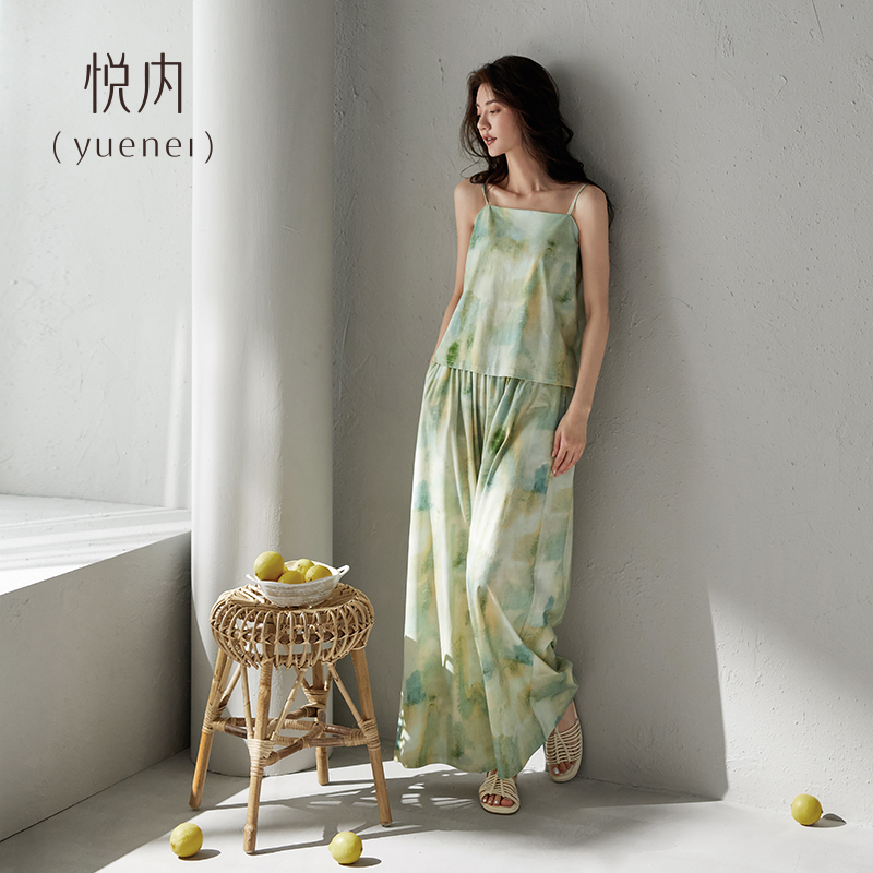 莫代尔吊带背心阔腿裤 夏款 家居服扎染渐变 夏季 悦内带胸垫睡衣女款