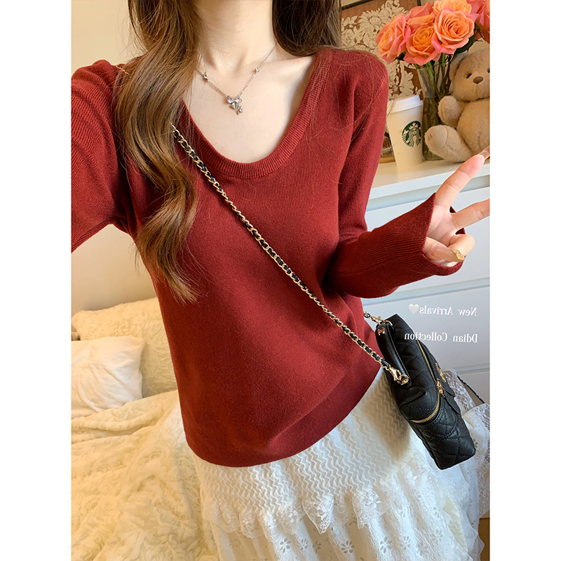 针织衫 气质u领百搭纯色安迪绒长袖 毛衣打底上衣 韩版 2025早春新款