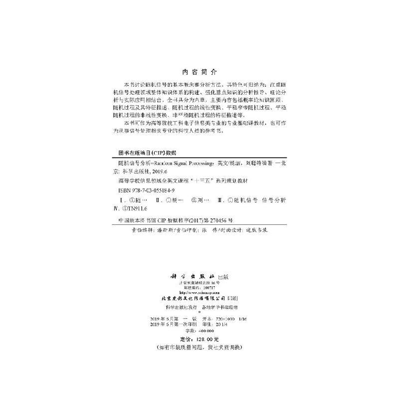 Signal Random Processing 杨洁 社 全新正版 科学出版 随机信号分析