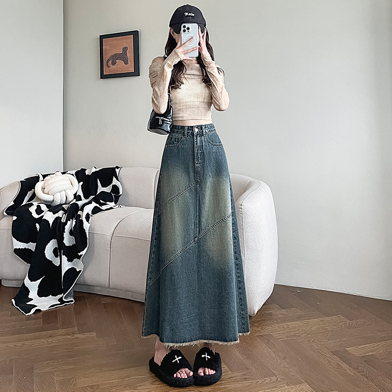 裙子长裙梨形身材 a字牛仔裙半身女长裙显瘦高腰长款 新款 春秋新装
