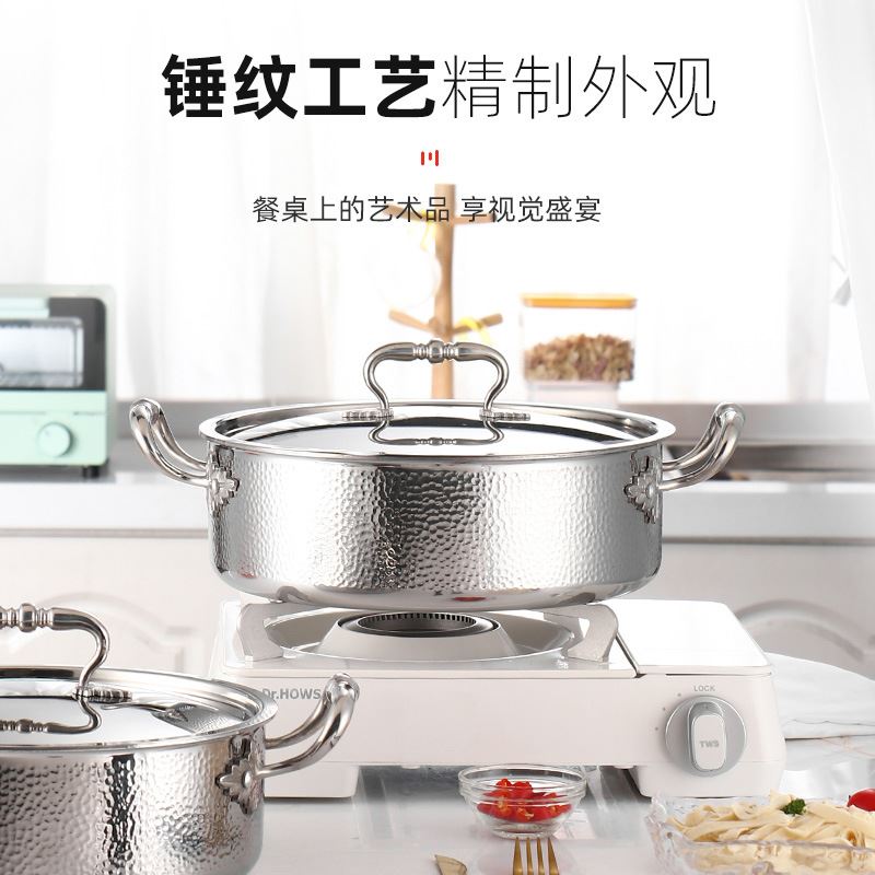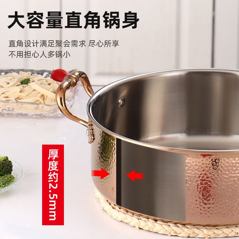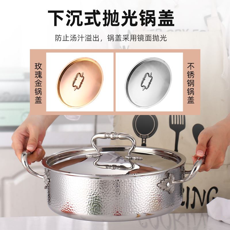 锤印鸳鸯锅火锅锅商用三层钢汤锅不锈钢火锅锅具可打logo