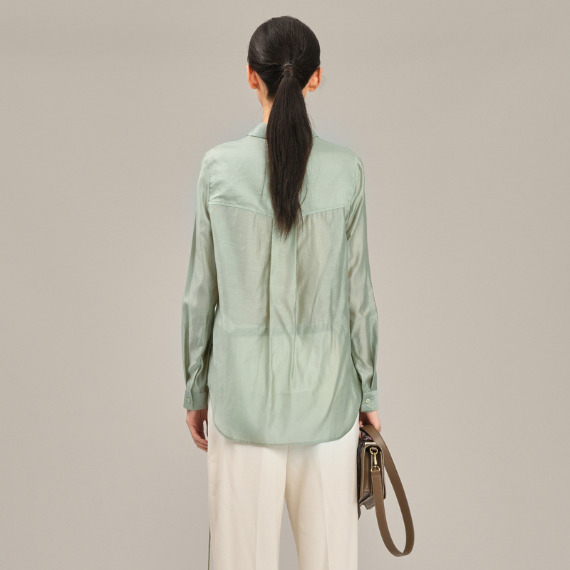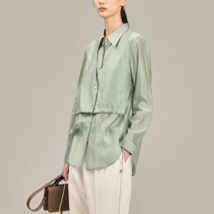 衬衫 拼接设计上衣女装 2025春季 中长款 新款 XG雪歌浅绿色莱赛尔长袖