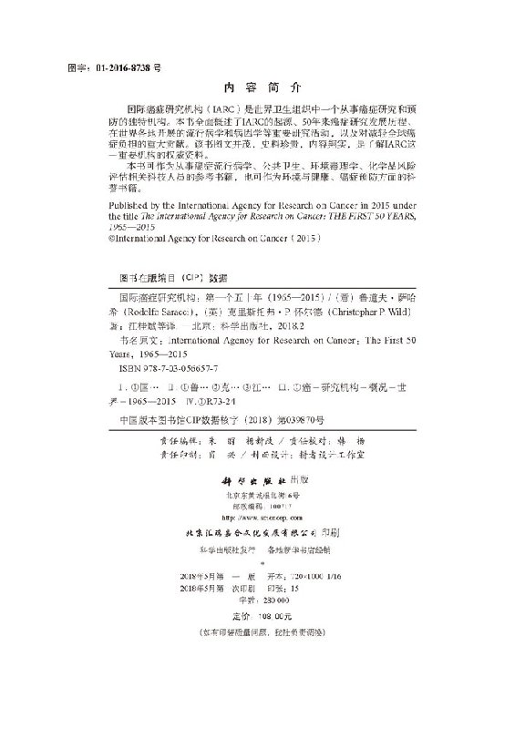 鲁道夫 生活 医学综合 国际癌症研究机构第一个五十年 科学出版 意 医学其它 社9787030566577 1965—2015