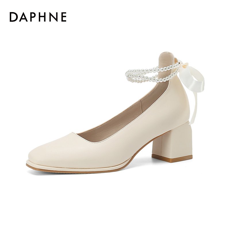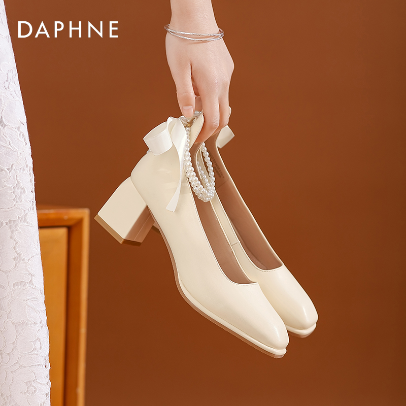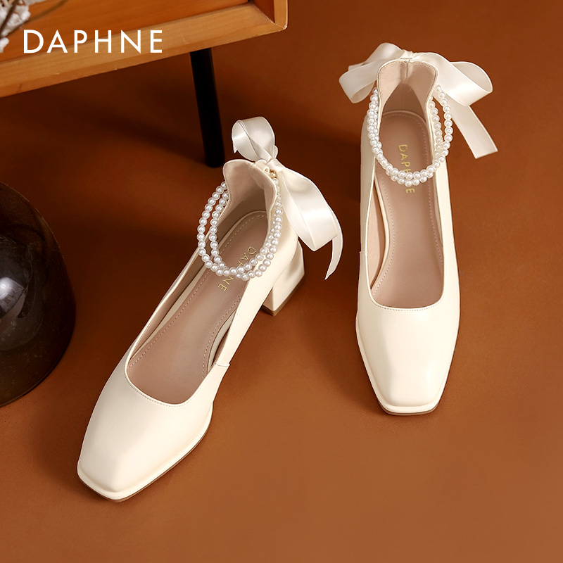 高跟鞋 粗跟白色单鞋 2025新款 玛丽珍鞋 新娘 春秋珍珠法式 达芙妮婚鞋