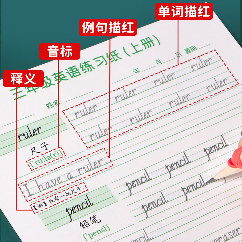 3-6年级斜体英语字帖上册下册人教版 同步课本英文单词字母三四五六年级小学生专用硬笔钢笔描红练字贴每日一练练字帖写字本练习纸