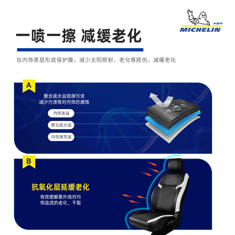 米其林表板蜡仪表保养剂汽车内饰塑料翻新保护养护液表板上光蜡