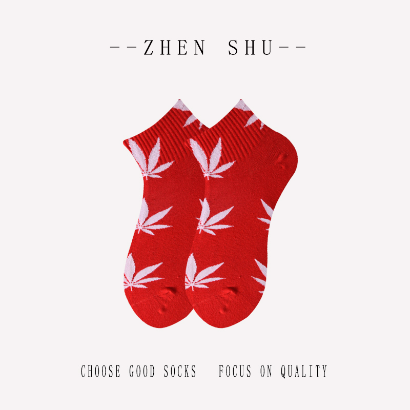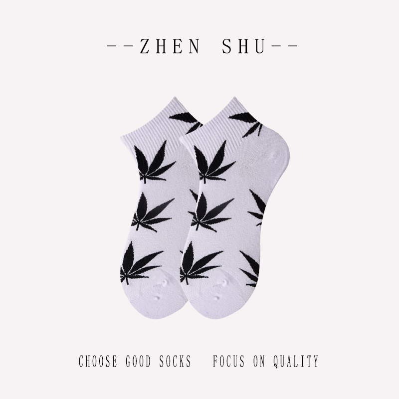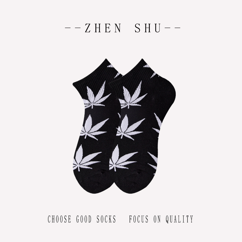 潮牌枫叶短袜子男士 低腰船袜吸汗棉袜潮袜 低帮短筒运动袜潮流个性