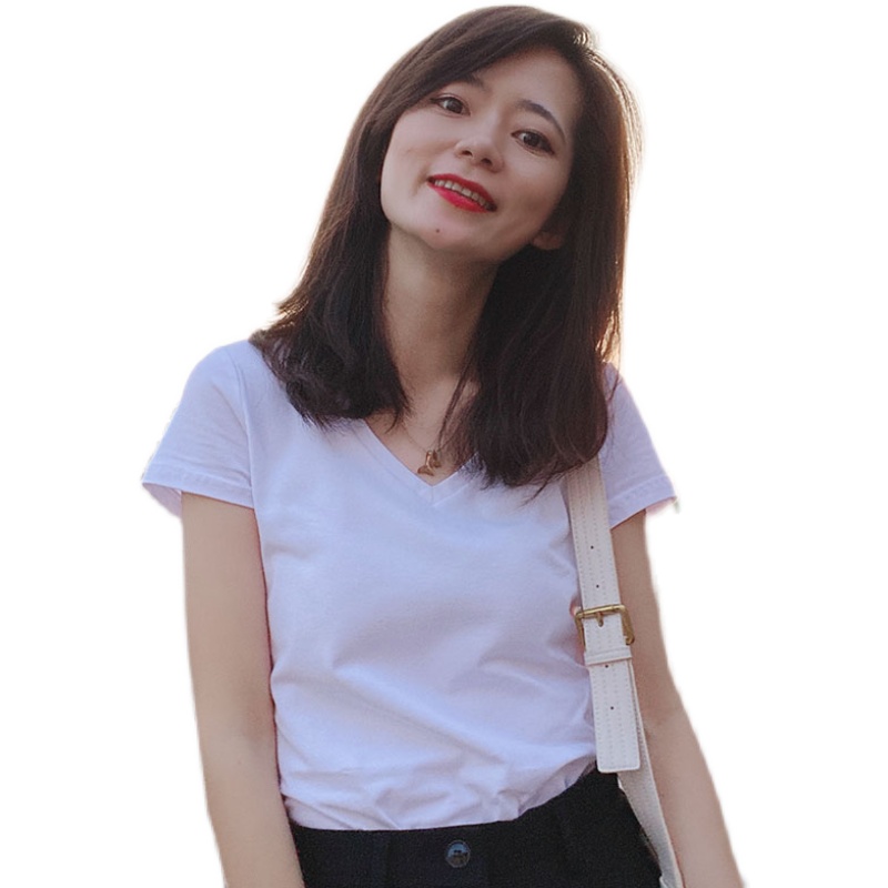 ins超火宽松大码 夏季 小众上衣 T恤女2025早春新款 白色V领纯棉短袖