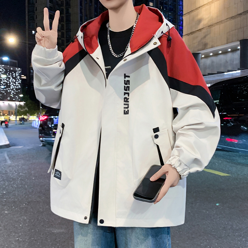 三福2025秋冬新款 英文印花冲锋衣夹克休闲户外连帽外套507966 男士