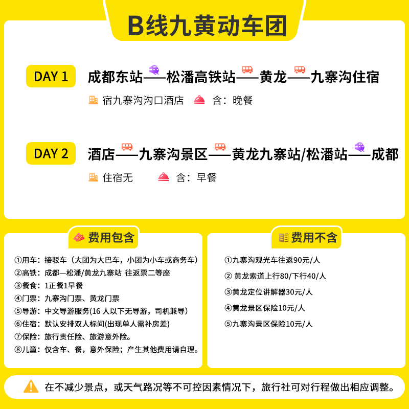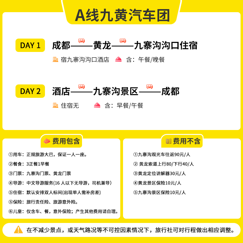 川西跟团游九寨沟黄龙2日游成都周边高铁2天1晚纯玩跟团游可8人团