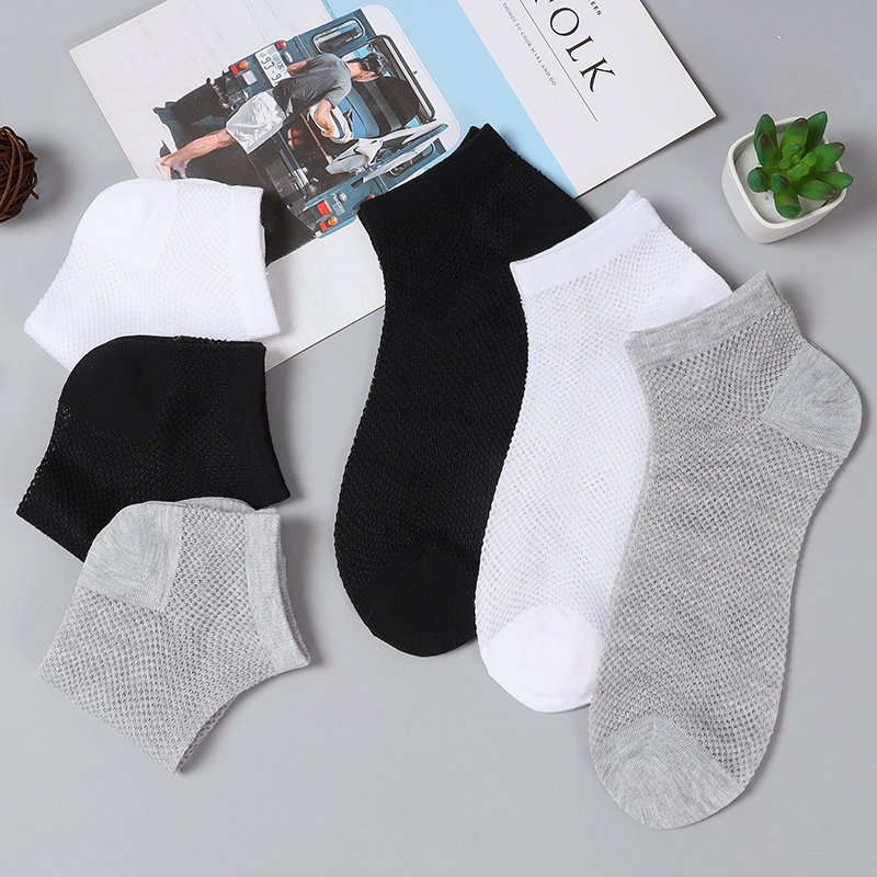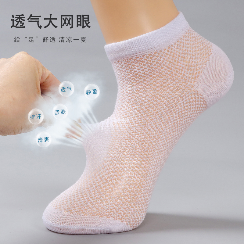 超薄棉质镂空短袜夏季 男士 浅口凉快 10双大网眼船袜短筒男薄款