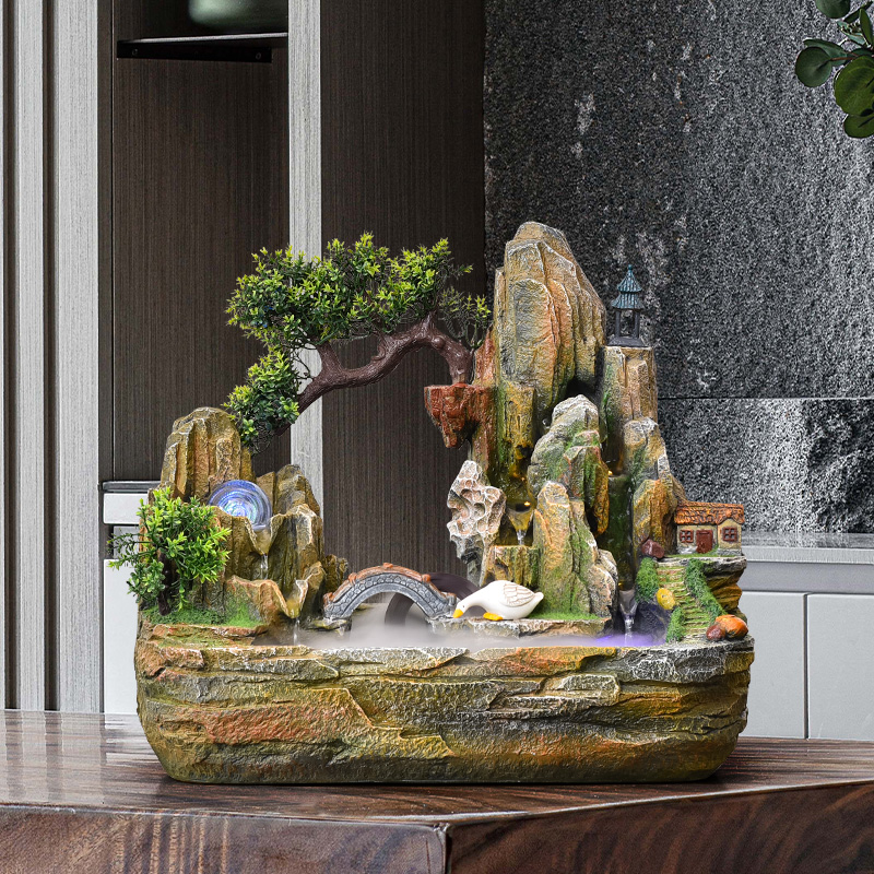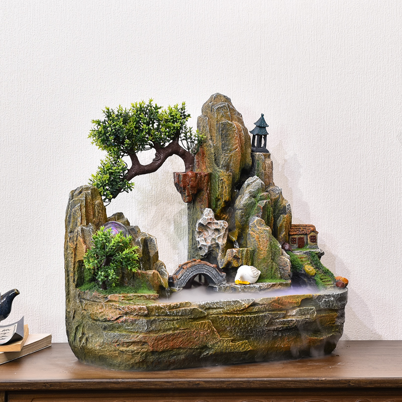 假山喷泉风水轮流水生财办公室客厅摆件电视柜旁装 饰造景开业送礼