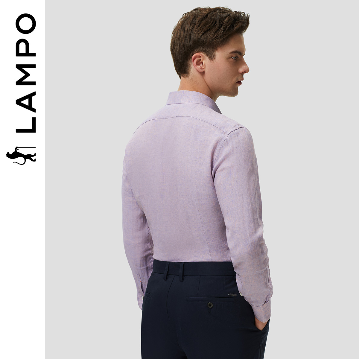 蓝豹 特惠 男士 衬衫 LAMPO 长袖 进口亚麻商务休闲男装 雨露麻