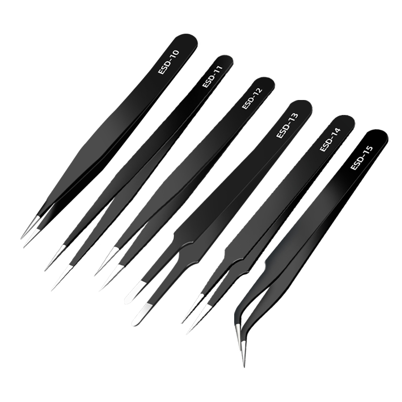 不锈钢镊子弯头细尖头燕窝挑毛粉刺夹防静电小夹子维修工具套装