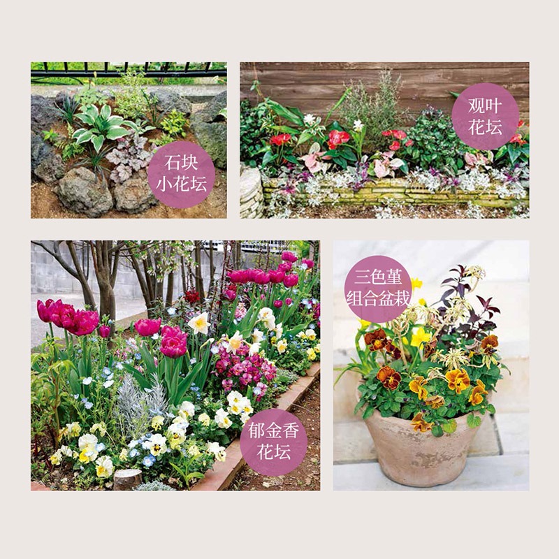 步骤图 小花坛景观设计法 7大类型 40种植物组合实例 种花新手做 第一次打造花园就成功 38种常见园艺植物养护 花坛小景与组合盆栽