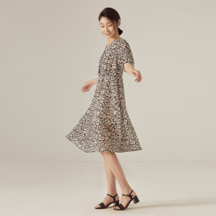 新款 朗姿纯羊毛v领收腰显瘦针织长裙设计感连衣裙冬季 免定金
