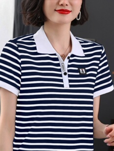 T恤打底衫 春秋季 女士长袖 大码 宽松翻领洋气Polo中年妈妈上衣 新款