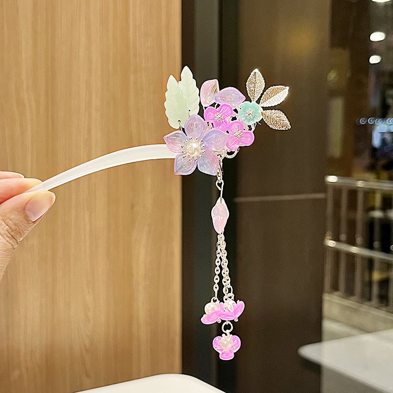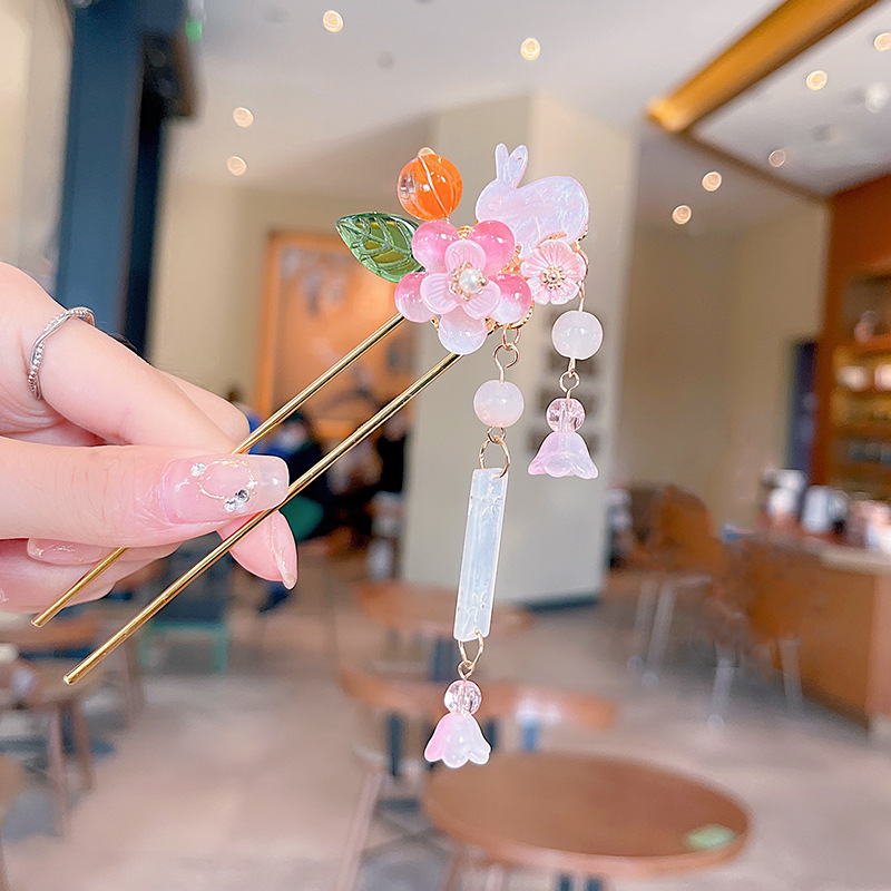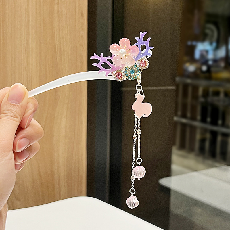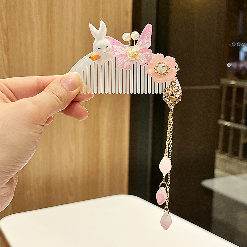 2025新款 古风头饰儿童超仙流苏发夹女童汉服蝴蝶结飘带不伤发头饰