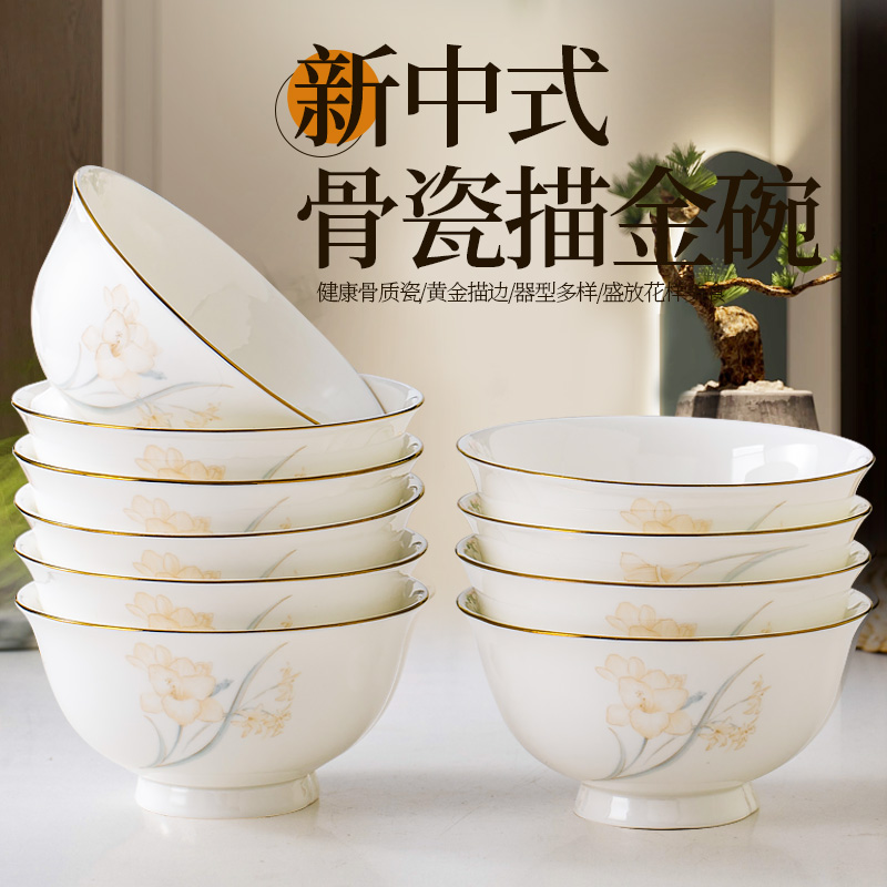 优尊陶瓷碗家用2025新款 高颜值轻奢金边餐具吃饭碗面碗圆菜盘组合