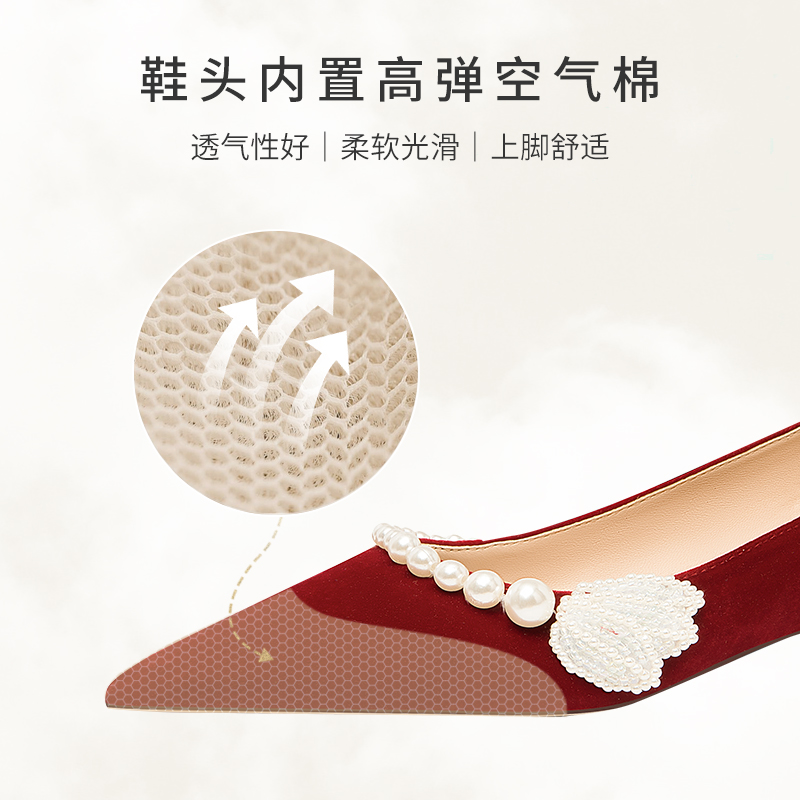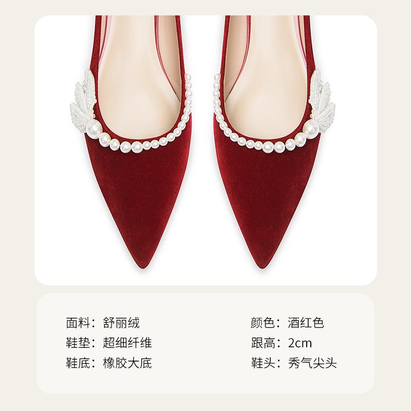 女细跟2025新款 单鞋 秋新娘鞋 秀禾婚鞋 浅口敬酒鞋 达芙妮红色高跟鞋