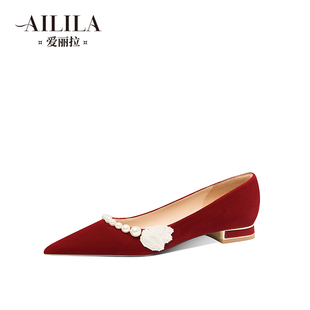 秋季 红色平底鞋 芭蕾法式 浅口婚鞋 达芙妮羊皮单鞋 豆豆鞋 女2025新款