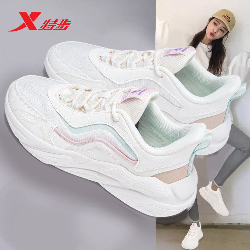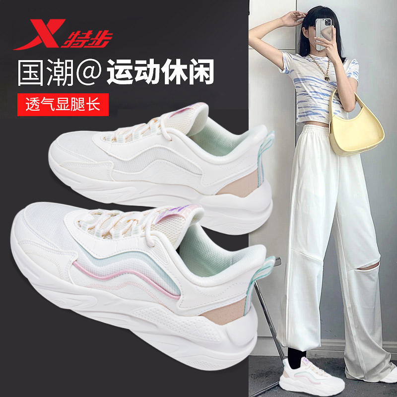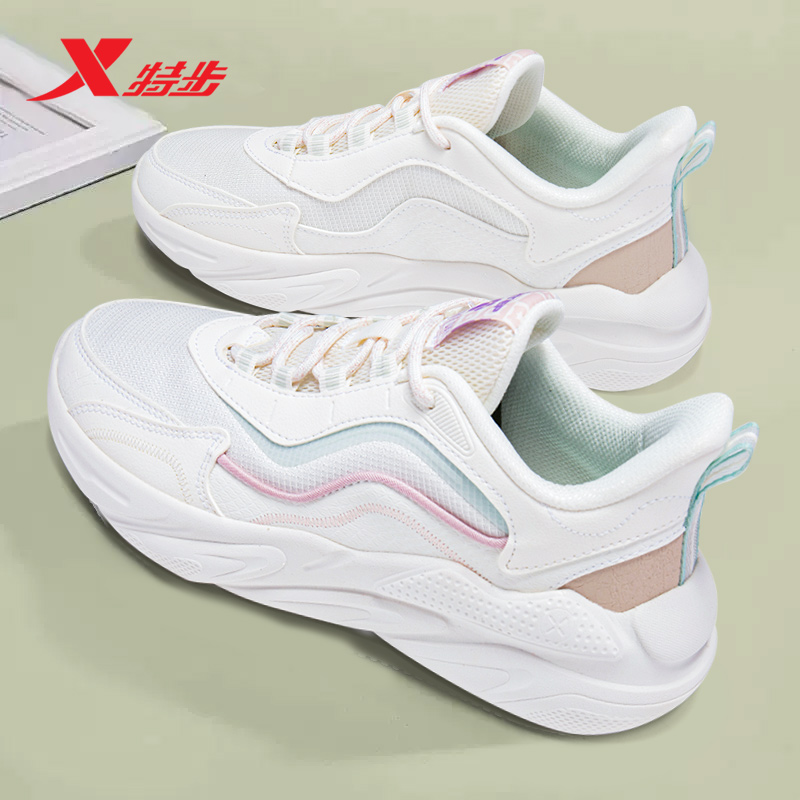 跑步鞋 女士轻便运动鞋 2025秋季 网面透气休闲老爹鞋 子 新款 特步女鞋